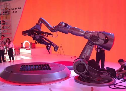 车展产品发布会热场的标配娱乐项目,拥有完美的全角度虚拟现实模拟飞行体验。体验者戴上VR眼镜,机械臂的底盘可以配上全感装置集成系统,为体验者提供了视觉、听觉、嗅觉、触觉,配以空中环境模拟系统,其摆脱地球引力身临其境的自由飞翔快感令人欲罢不能,终身难忘。