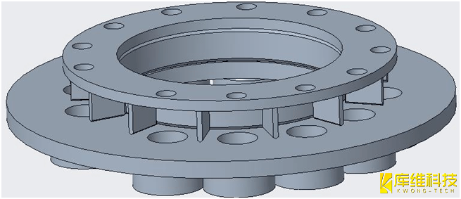 为控制焊接变形,筋板和环焊缝同时焊接时,应先将筋板打底焊接,再依次焊接环筋外环焊缝、筋板剩余焊缝、环筋内环焊缝。