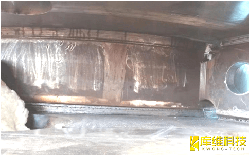 驱动箱零件组对拼点后,进行定位焊接,由于焊接机器人正式焊接时不能有效识别定位焊缝,若定位焊缝尺寸较大,焊接容易产生缺欠。因此,在正式焊接前需要对定位焊缝两端10~15mm打进行磨处理,圆滑过渡,保证能够与正式焊缝良好结合。定位焊缝要求焊透,不允许存在裂纹、未熔合、气孔等缺欠。