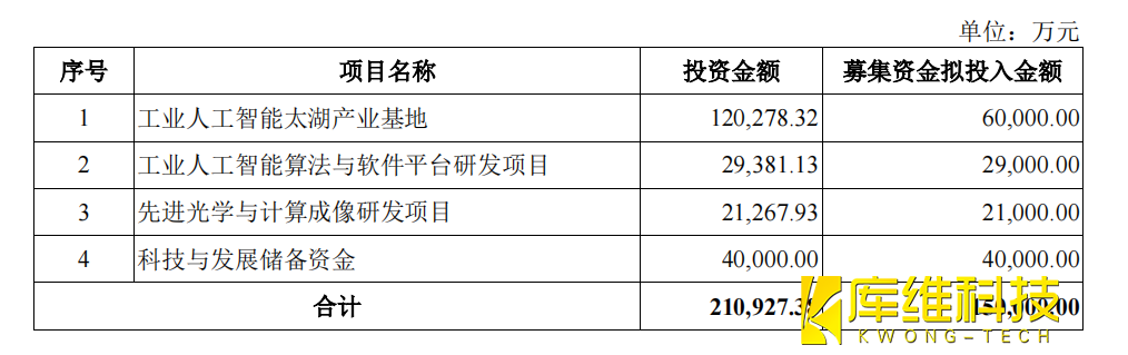 凌云光本次发行募集资金将投入以下四个项目:“工业人工智能太湖产业基地项目”、“工业人工智能算法与软件平台研发项目”、“先进光学与计算成像研发项目”、“科技与发展储备资金”。