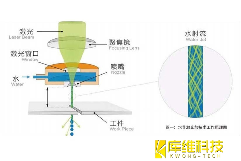 水导激光加工技术(WJGL)是一种混合加工方法,它将激光与“细如发丝”的水射流相结合,以类似于传统光纤的方式通过全内反射精确引导激光束,水射流可以持续冷却切割区域并有效地清除碎屑。作为一种“清洁、受控的冷激光技术”,WJGL技术解决了干式激光加工技术存在的重大问题,如热损伤、污染、变形、碎屑沉积、氧化、微裂纹、锥度和精度低。实现对玻璃、陶瓷、蓝宝石等脆性材料的精密切割,还能够去除材料表面的油墨、PVD 等,为脆性材料的精细加工及表面处理带来了极大便利,进一步拓宽了激光切割技术在不同材料加工领域的应用范围。
