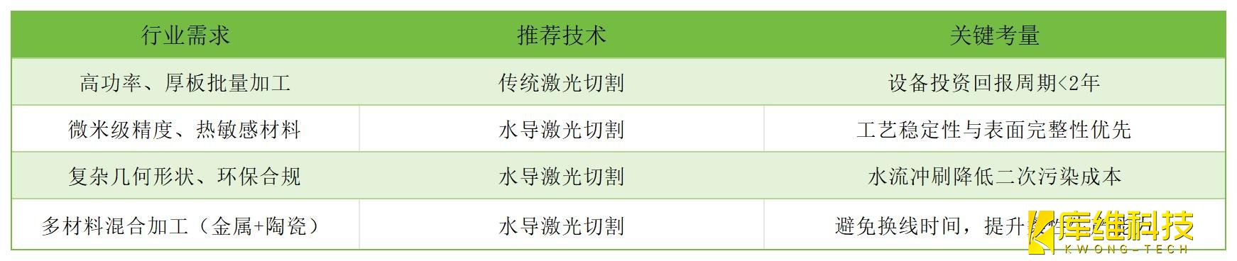 对于追求极致精度与环保的企业,水导激光切割正成为高端制造的新标准;而传统激光切割仍在大规模金属加工领域保持不可替代性。