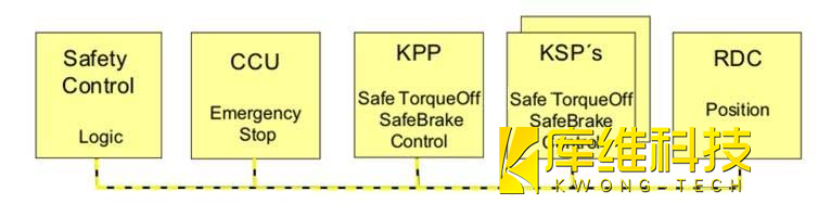 安全组件之间通过 EtherCAT 和 FSoE (Fail Safe over EtherCAT)相互通讯示例: