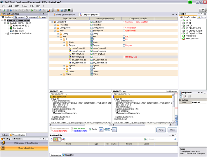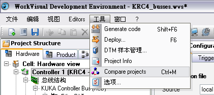 1. 在 WorkVisual 中按序选择菜单项: 工具 > 比较项目。 窗口 【 比较项目】打开。