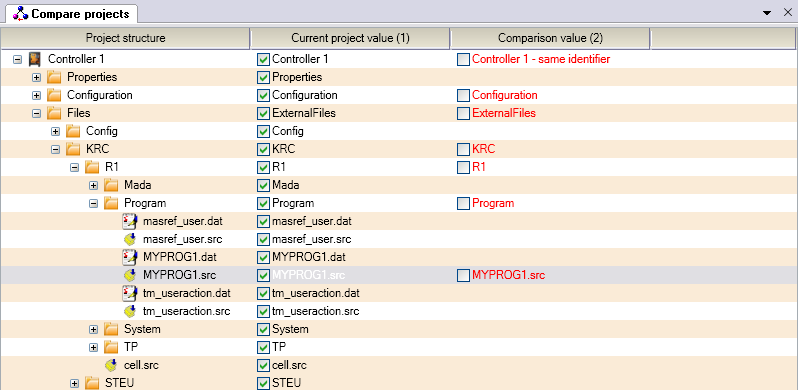 2. 选择需与当前 WorkVisual 项目作比较的项目,例如实际机器人控制系统上的同名项目。